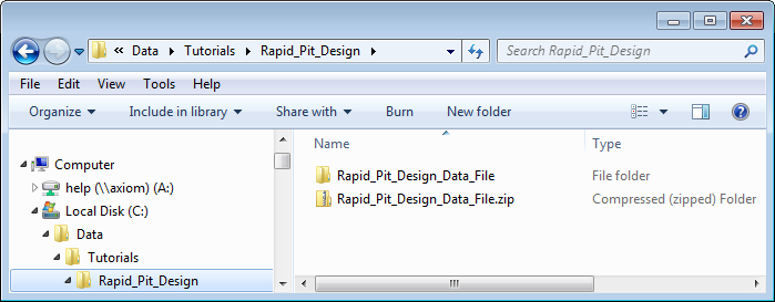 .zipfile to C:\Data\Tutorials\Rapid_Pit_Design\Rapid_Pit_Design_Data_File that contains the files required for this tutorial.