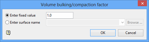 Specify the name of the surface that will be used to represent a model of the bulking/compaction factor (the factor varies laterally). The drop-down list contains all grid models found in your current working directory. Click Browse to select a file from another location.