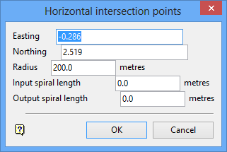 These fields show the easting and northing co-ordinates of the selected intersection point. These values can be overwritten.