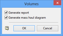 Select this checkbox to generate a mass haul diagram. A mass haul diagram shows both sectional cut and fill, and cumulated volumes. It is useful for balancing earthworks and calculating haul distances.
