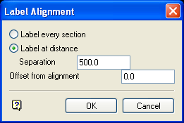 Use the Label option to label parts of the design objects with text suitable for plotting. Objects suitable for plotting are, in plan view, the horizontal intersection points and the horizontal alignment, and in long section view, the vertical alignment, natural surface, chainage and cut and fill volumes.Instructions