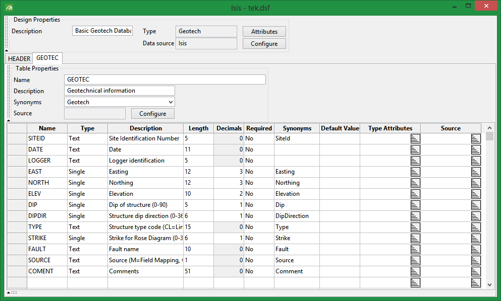 2 tables: Header and Geotec.