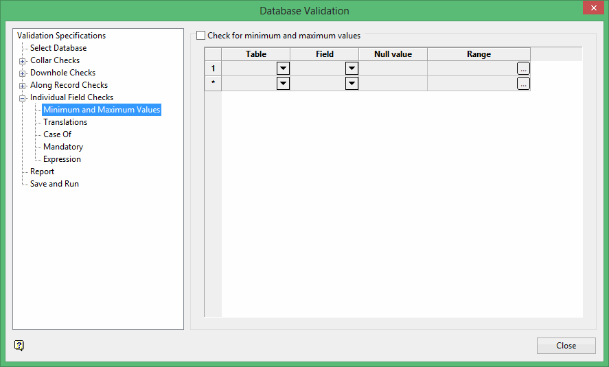 Select this check box to check that all values in the nominated tables and fields fall in the specified range.