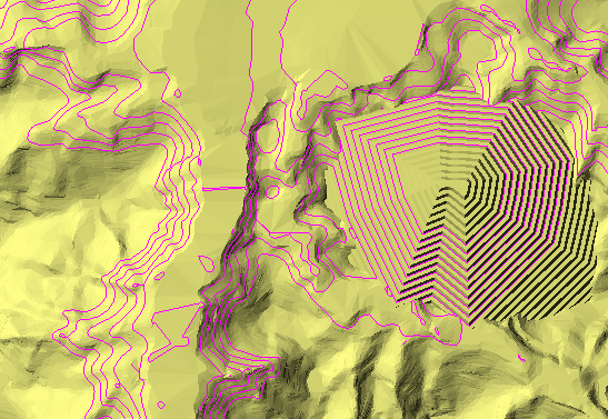 Figure 1: Contour lines have been limited to the elevation levels shown in the panel above, with an interval of 10 units.