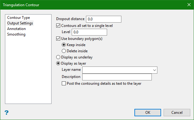Depending on whether you selected grid or triangulation, the respective contour panel displays. However, both the panels function the same way.