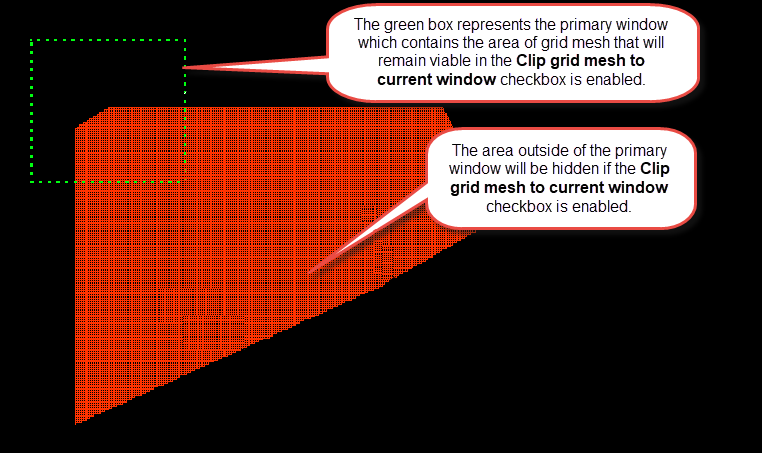 Select this option if you want to clip the grid mesh to the Primary Window. If this checkbox is ticked, then the section of grid mesh displayed inside the Primary Window will remain visible, however, any part of the grid outside of the current Primary Window area will be 'clipped' or hidden.
