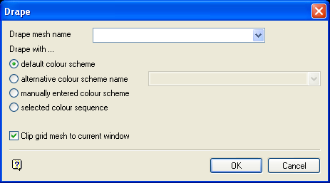 The Drape option allows you to drape 'attribute variable data' over a loaded and visible grid mesh model. The attribute variable data of one grid mesh is displayed as colour coded intervals over the selected grid.