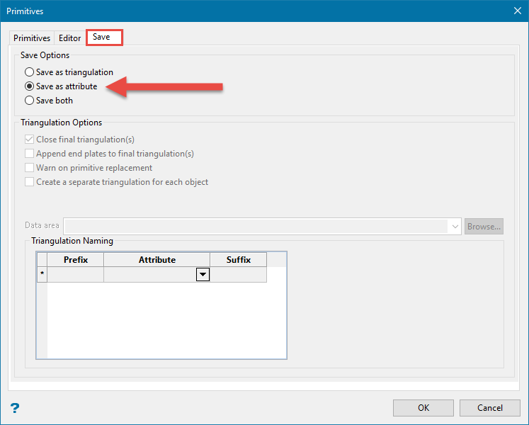 Use this option to convert an object that has been assigned a primitive attribute into a triangulation.
