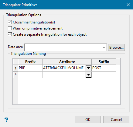 Select this option if you want to create a separate triangulation for each separate object selected. It also enables the Triangulation Naming table, allowing you to customise the name of the triangulations. You can apply multiple labelling attribute to the selected objects.