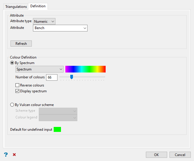 Apply to triangulations loaded in Vulcan - Apply the colours to all triangulations that are currently loaded in Vulcan.