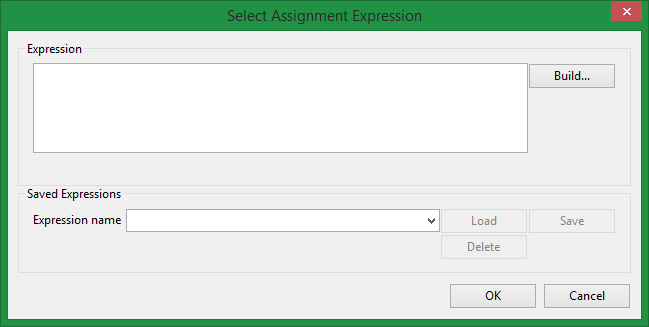 When setting an attribute value by an expression, choosing the Select button takes you to the Select Assignment Expression panel. Here you can manually enter an expression, select to build an expression using the Build button, load up a previously created assignment expression, and also perform other management tasks on the saved expressions stored in the TriangulationAttributeExpressions.spec specification file in the ENVIS_RESO folder.