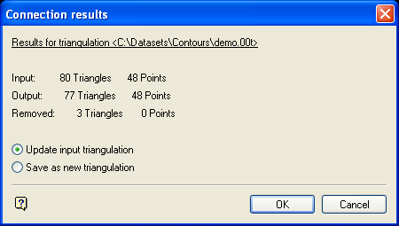 The triangulation is then checked and any crossing triangles are removed. If any are removed, then the Connection results panel displays. If no crossing triangles are removed, then a message informing you of this displays.