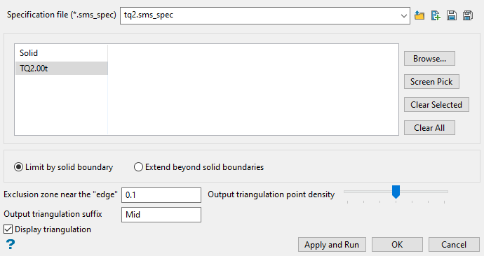 The Modify triangulation attributes checkbox is not applicable to triangulation files that are currently loaded on screen. Use the Attributes option (under the Model > Triangle Utility submenu) to modify a loaded triangulation's display attributes.