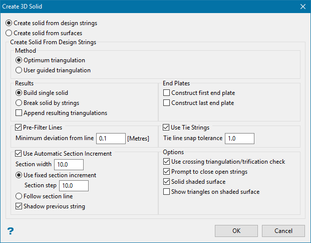 Create solid from design strings - Select this option if you are going to create the solid from a series of strings.