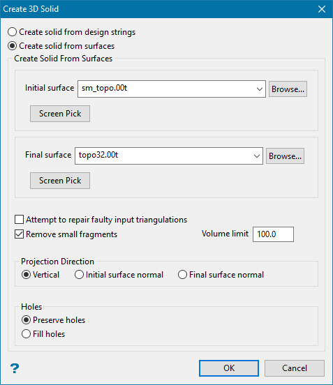 Create solid from surfaces - Select this option if you are going to create the solid from triangulated surfaces.