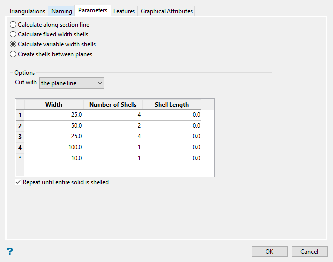 Select how the triangulation will be cut into shells.
