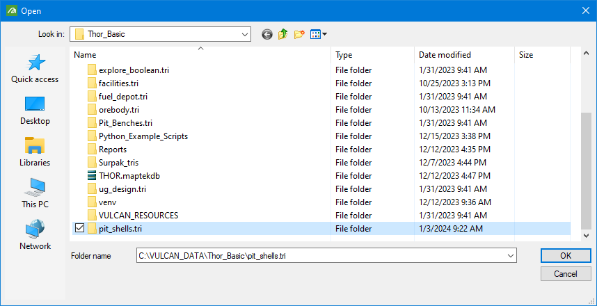 Screen Pick - Allows you to populate the list with the triangulations you select from among those loaded already loaded into Vulcan.