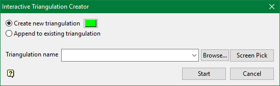 On the Model menu, point to Triangle Surface, and then click Interactive Creator to display the Interactive Triangulation Creator panel.