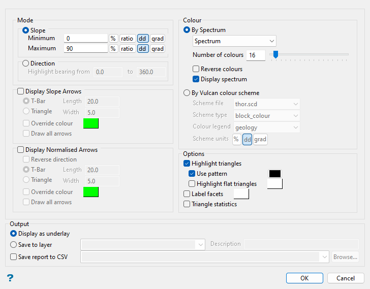 Enable the Highlight Slope option if you want to colour-code the facets based on the dip (steepness).
