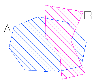 Polygon Difference - The new polygon is the area remaining after the second selected polygon (B) is removed from the first selected polygon (A).