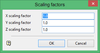 Enter the scale factor in each direction. A value less than one will reduce the triangulation; a value equal to one will leave the triangulation unchanged, and a value greater than one will enlarge the triangulation.