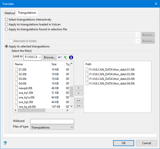 Use a selection file to list all the triangulations to be translated.