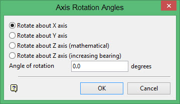 Select the axis about which to rotate the triangulation. For the X-axis, Y-axis, and Z-axis (mathematical) options, a positive angle is rotated in anticlockwise direction and a negative angle in clockwise direction.