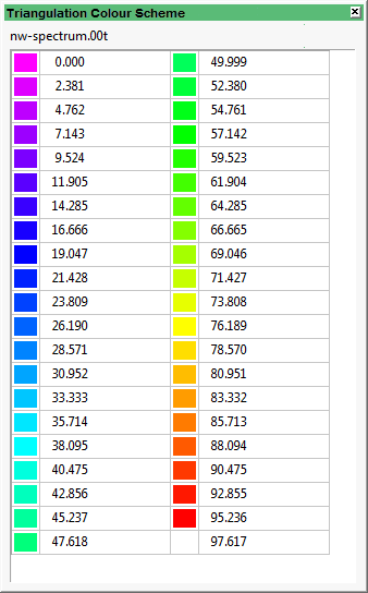 The Triangulation Colour Scheme panel displays listing all of the colours that are used in the triangulation.