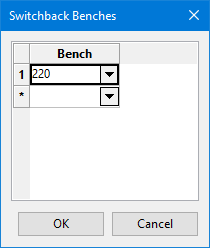 Switchback Benches - Click the small ellipsis icon to display the selection panel. Use this to select the bench(s) on which the switchback will occur.