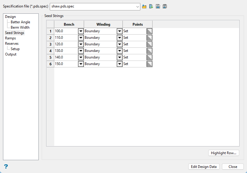 Note: To access the table on the Seed String pane, click Edit Design Data, then select Edit Seed String, Delete Seed String, and Seed String Details buttons to make changes to the seed string.