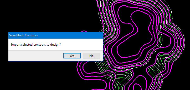 Selecting Yes will bring in the selected contours as seed strings and display the Pit Designer toolbar menu with different editing functions.