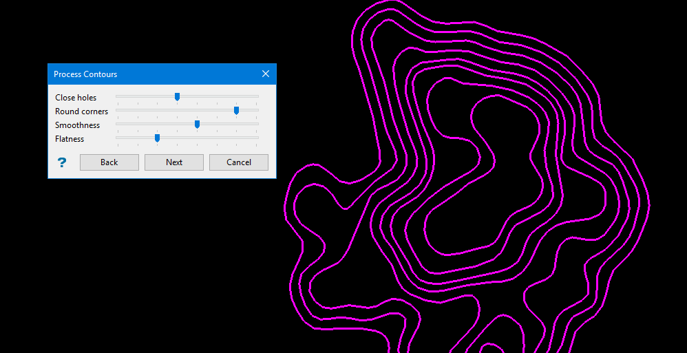 Click Next to open the Process Contours panel.