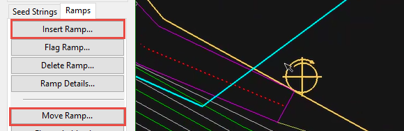 To create a ramp, click Insert Ramp, then select the starting point of the ramp anywhere along the seed sting.