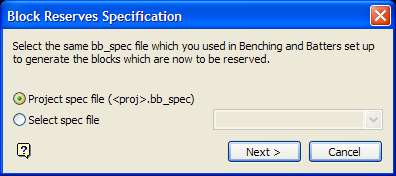 Select an existing Benching and Batters specification file (.bb_spec). The drop-down list contains all