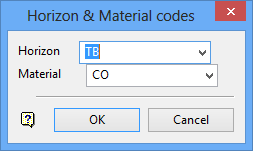 The horizon and material codes are used in the selection of the required block information. The codes can be selected from the list or manually entered.