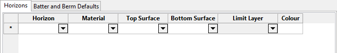 Note: The Benching and Batters Set Up panel utilises grid controls, (right-click context menus), that allow you to perform options such as hiding columns, cutting, copying and pasting cells, and inserting and deleting rows. Refer to the Grid Controls section for more information on managing grid information.