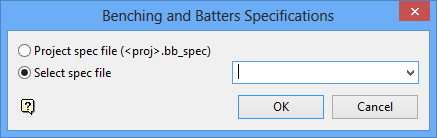 Click Save to save the definitions to your Benching and Batters Specifications file. The resulting file will be placed within your current working directory. Use the Save As button if you want to save an existing file under a different name. Once selected, the Save spec file as panel is displayed.