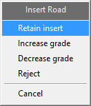 If the road is correct, click Retain Insert. If required, increase or decrease the grade.