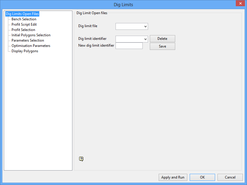 On the Open Pit menu, point to Dig Limits, and then click Edit to display the Dig Limits interface.