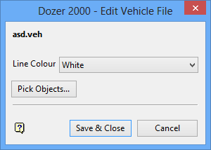 Use the Create/Edit Vehicle File option to create a new Dozer 2000 Vehicle file (.veh) or edit an existing one.
