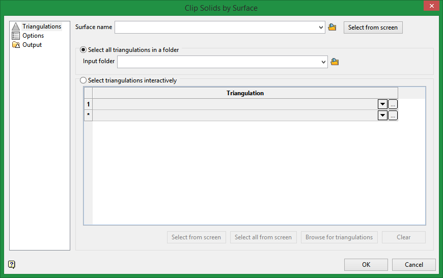 Select an output folder for the clipped triangulations. You may keep the default folder created automatically or enter a name of your own with the .tri file extension.
