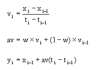 Given: a series of timed parameters (x i , t i ) where i = 1,..,n and t i > t i-1 ; w = weighting factor; y i = filtered result.