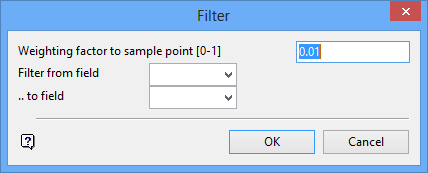 Enter the weighting factor, which is a number between 0 and 1. The weight applies to the current point in the filter. Higher weightings give more emphasis to the current point, and lower weighting give emphasis to the time history. Comparing the filtered and unfiltered data on charts will illustrate this weighting.