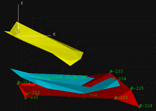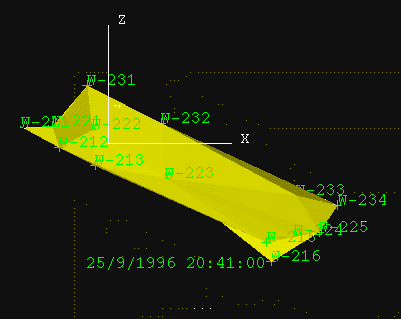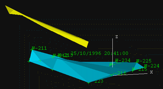 Diagram 3 - Triangulated Surface Representing Displacement at 25/9/1996 20:41:00 (yellow)
