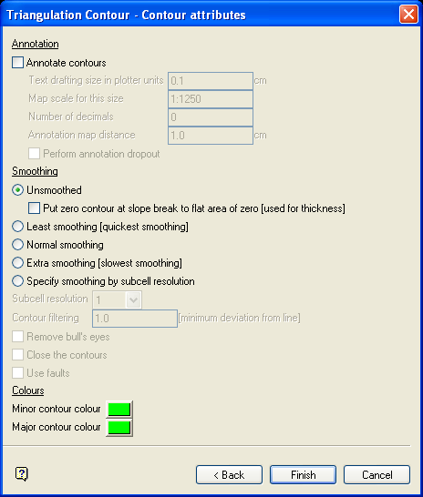 This to specify contour colours, whether smoothing is required, and to annotate the contours. Refer to the Model > Contouring > Contour option for more information on this panel.