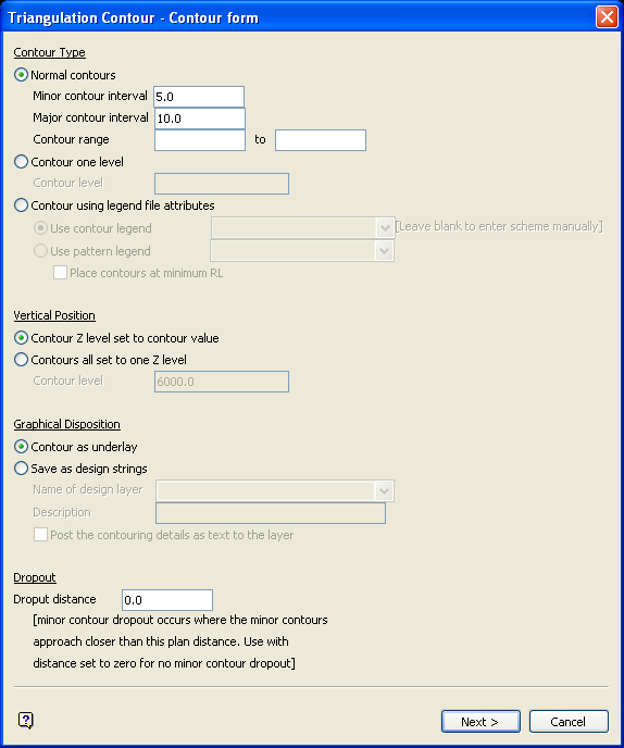 The Surface contours modelling method produces the following panel.