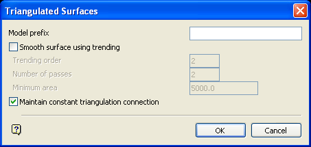The Triangulated surfaces modelling method produces the following panel.