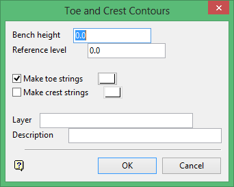 On the Open Pit menu, point to Open Cut Design, and then click Toes And Crests to display the Toe and Crest Contours panel.