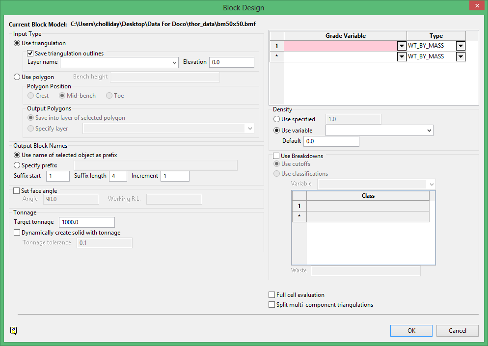 Select this option if a variable in the block model contains the density values. You will need to enter the block model variable containing the density values.