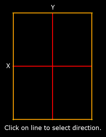 Click the Pick button to indicate the direction onscreen. Be sure the block model is already loaded into Envisage before using this option. The block model border display will change to resemble what is shown below, with the X and Y axes displayed as red lines. Click on a line to select the direction.